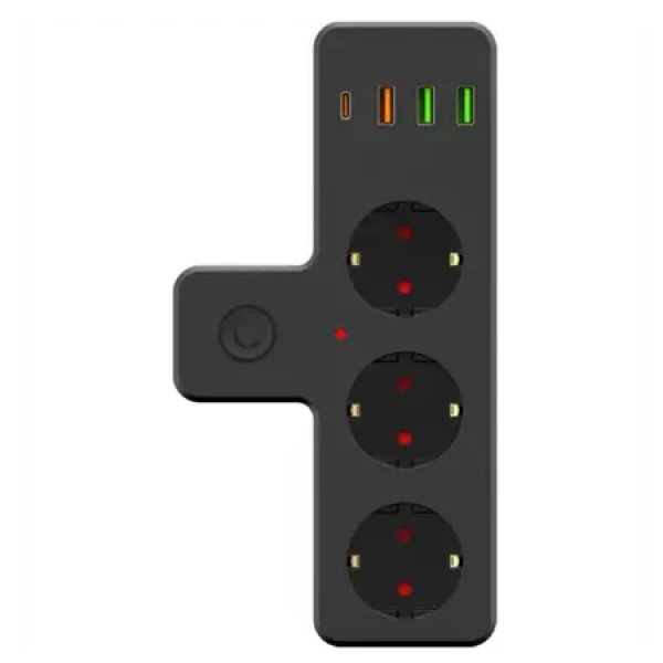 Zuidid FTR-12 3 lü Termal Akım Korumalı Priz 3 USB + 1 Type-C 20W PD Giriş